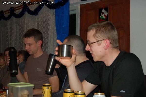 Coroczny Rajd Adasia, w tym roku połączony z XX –leciem Akademickiego Koła Górskiego zgromadził na Abrahamowie u Radeckich ponad czterdziestu gości. Rozpoczęliśmy od toastu za całe dwadzieścia lat istnienia koła, przechodząc do miłych podziękowań dla dinozaurów kołowych – ojców i matek założycieli, dochodząc do turystów amatorów i innych kołowych zjawisk. Każde podziękowanie wiązało się z efektem przytulenia do piersi SzeFa, a efektu tego mogli doświadczyć: Ewa Hoczek, Jasiu Wawrzyta, Grzesiu Holerek, Leszek Sadowski, Romek Kopeć i dr (prawie habilitowany) Rafał Butor. Efektu przytulenia SzeF nie mógł wykonać sam wobec siebie, dlatego też Tomek w ramach podziękowań przytulił go do swej piersi. I w ten oto sposób zakończyliśmy oficjalną część świętowania. Na mniej oficjalną, ale jakże przyjemną część składało się: grzane wino….i długi pokaz slajdów. Na początek slajdy z Alp, potem Maroko, Islandia, Ukraina, Rumunia, Dolomity….i tak do późnych godzin nocnych, wplatając w to aromatyczne grzane wino…produkcji made in żywiecka 91a.